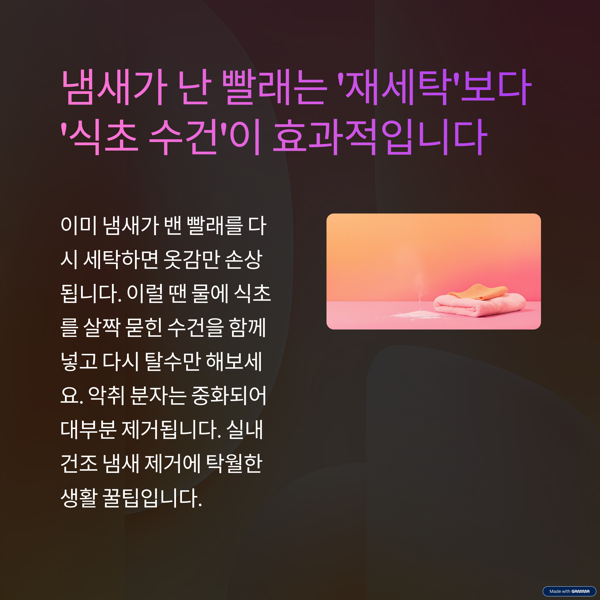 냄새가 난 빨래는 '재세탁'보다 '식초 수건'이 효과적입니다