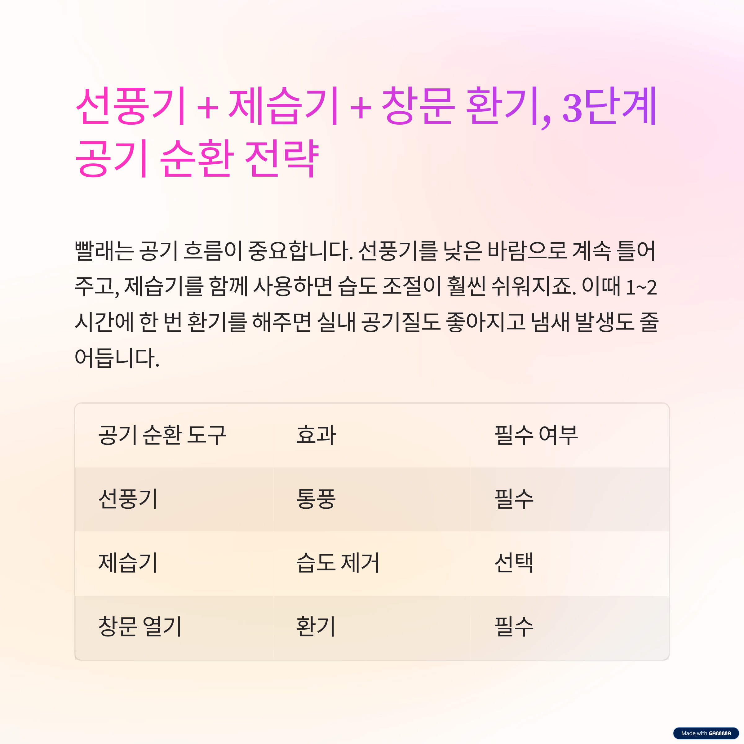 | 선풍기 | 통풍 | 필수 |