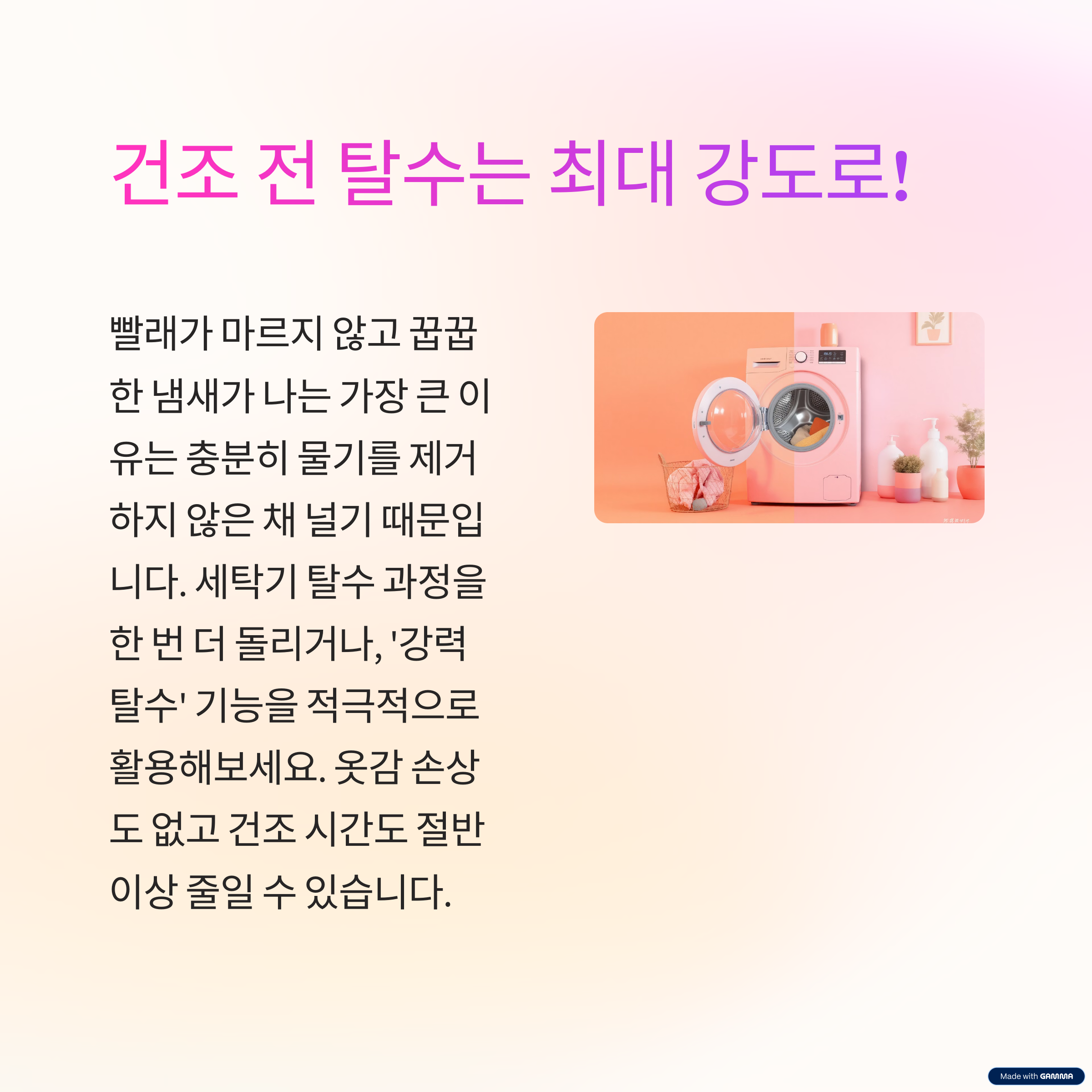 건조 전 탈수는 최대 강도로!